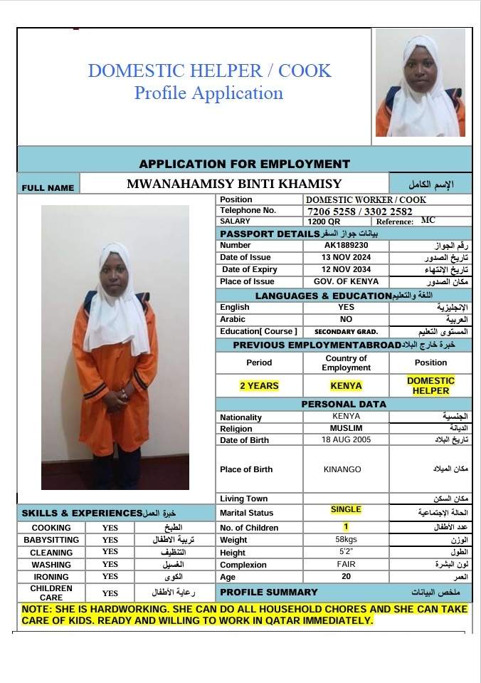 12 | الجنسية | كينيا |
