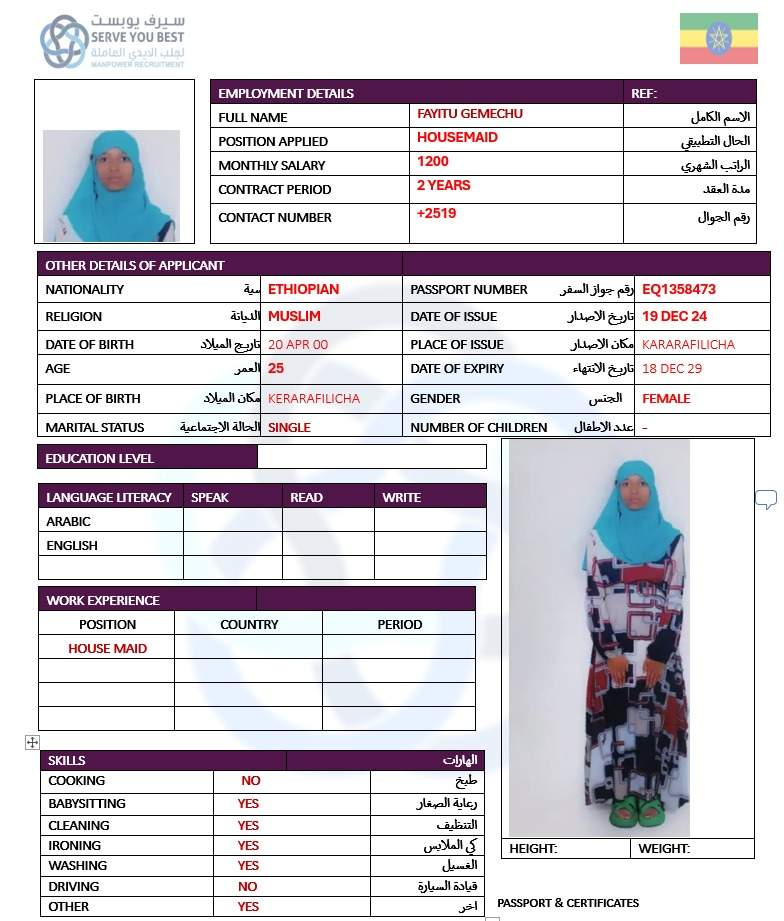 4 | الجنسية | اثيوبيا |