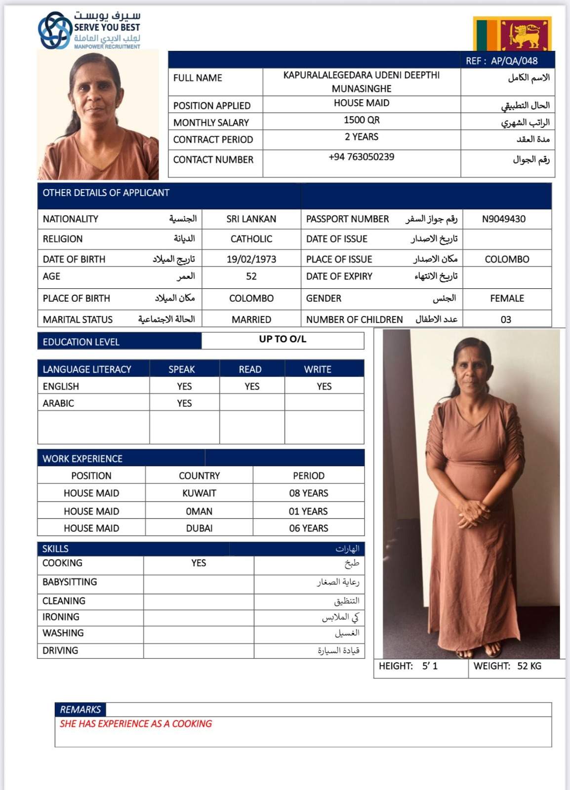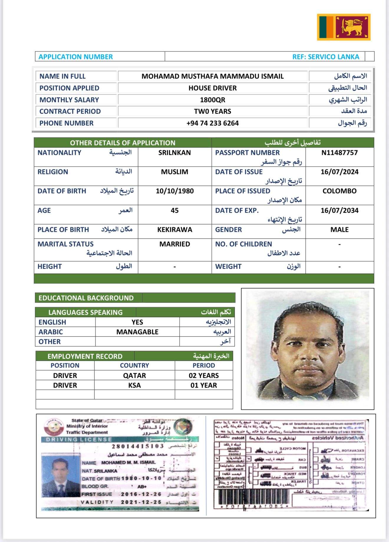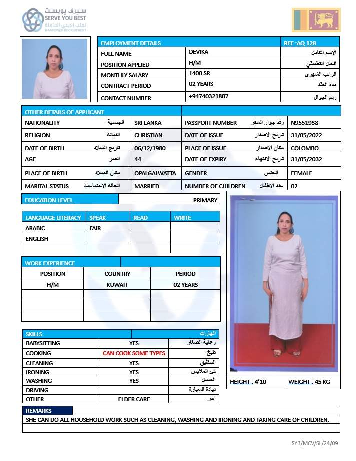 2 | الجنسية | سيريلانكا |