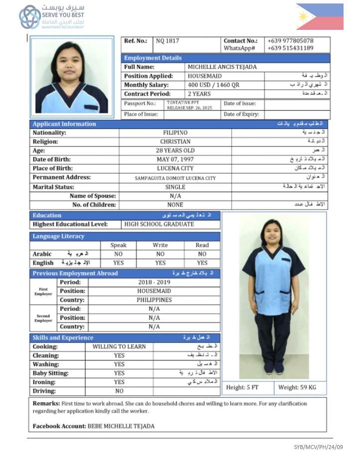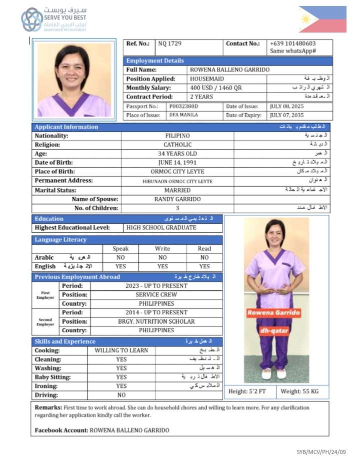 3 | الجنسية | فلبين |