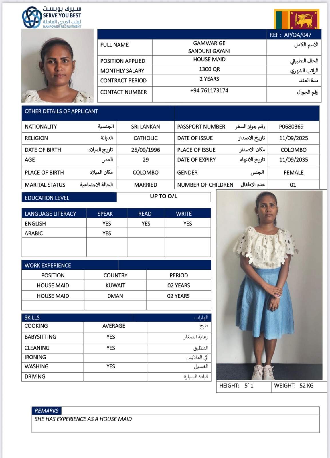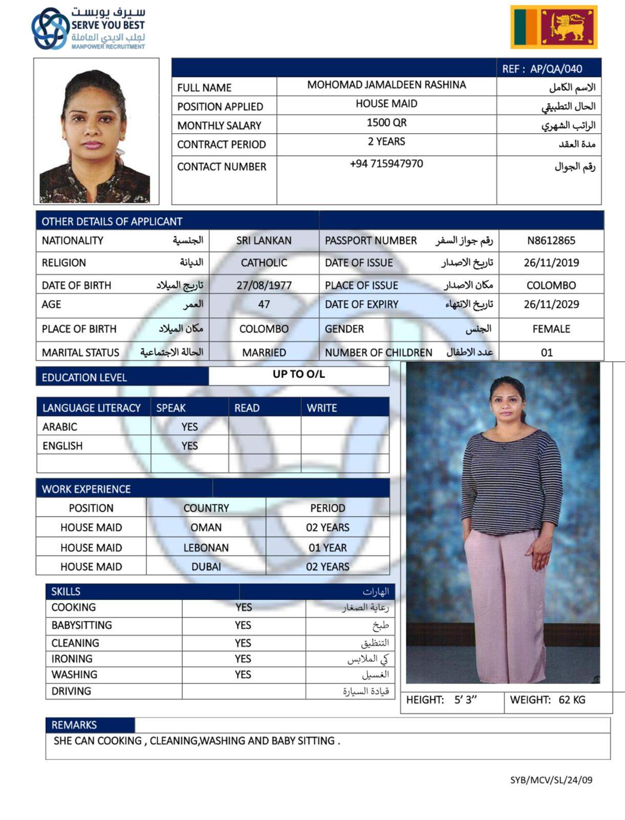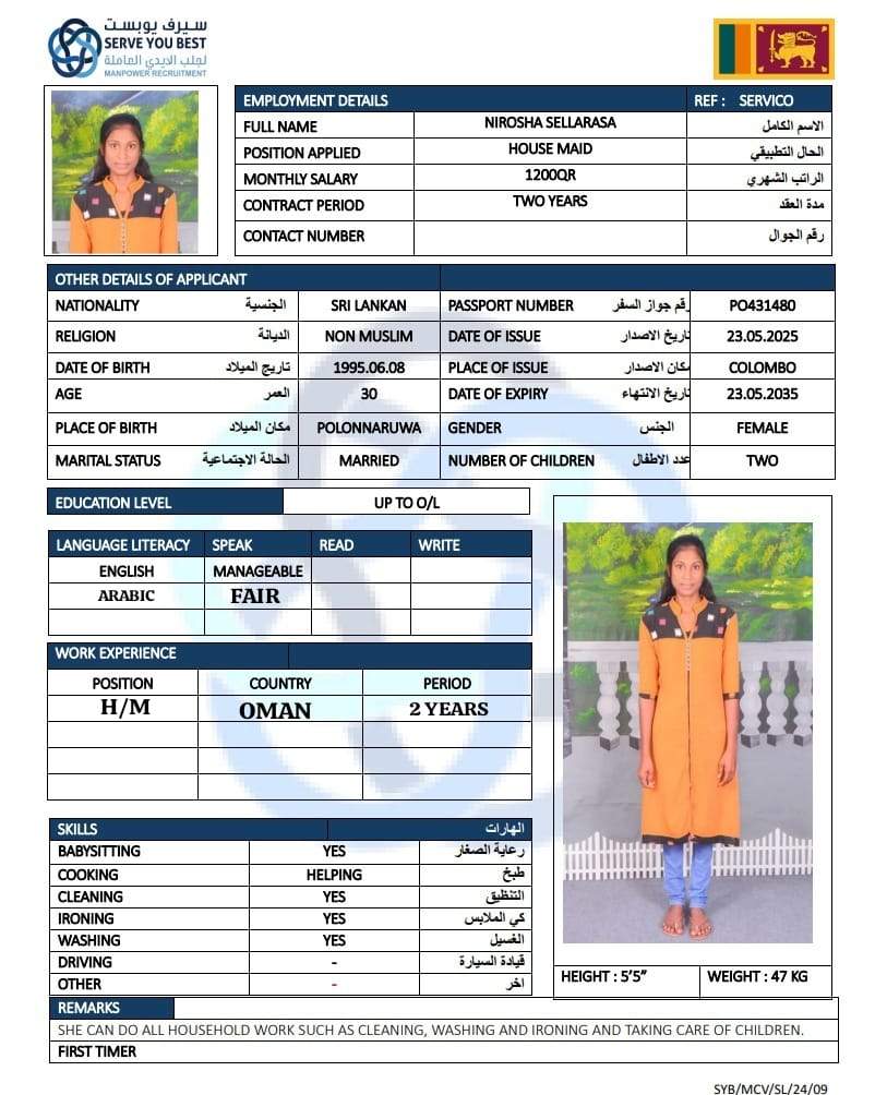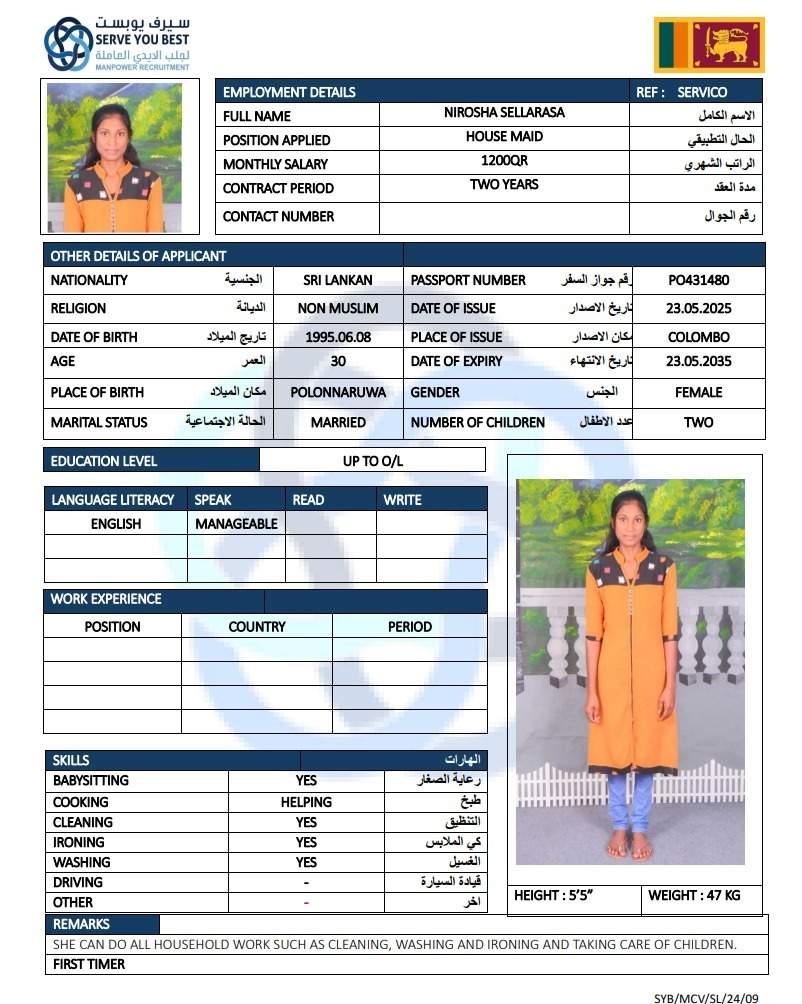 5 | الجنسية | سيريلانكا |
