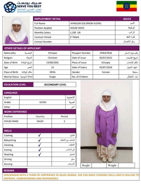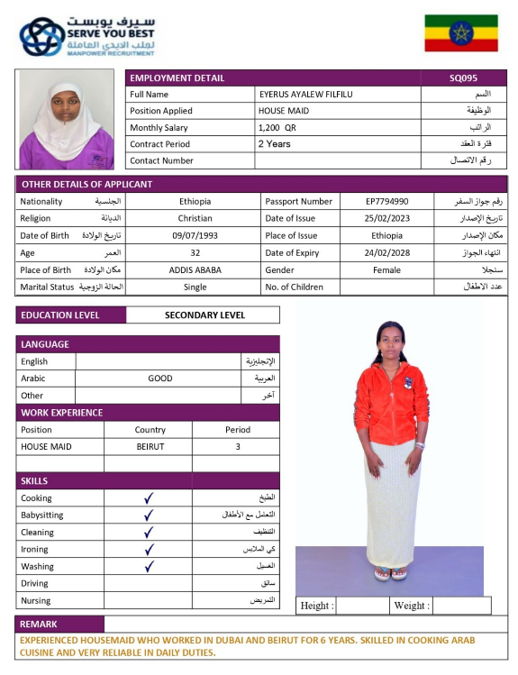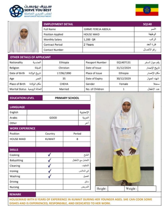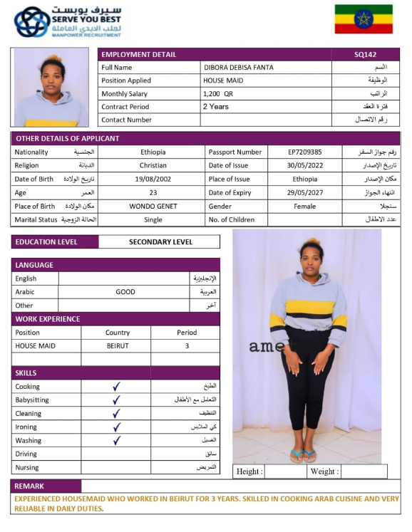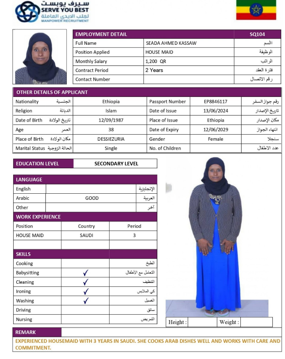 1 | الجنسية | اثيوبيا |