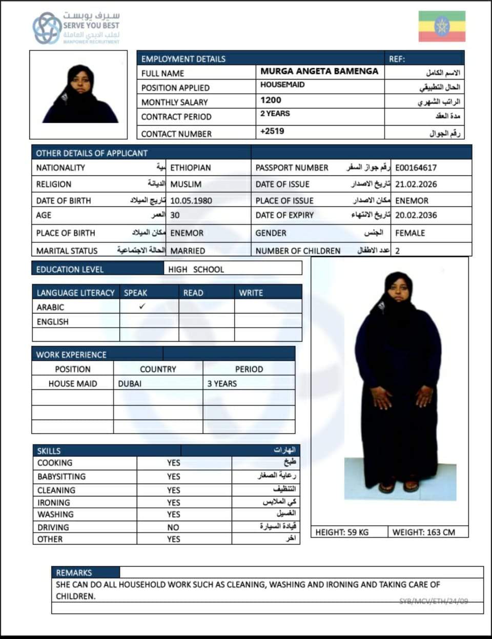 0 | الجنسية | اثيوبيا |
