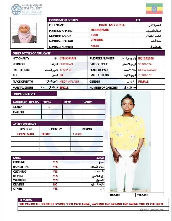 1 | الجنسية | اثيوبيا |