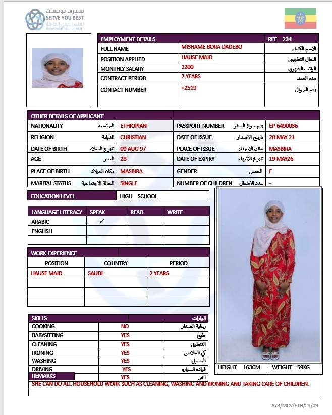 1 | الجنسية | اثيوبيا |
