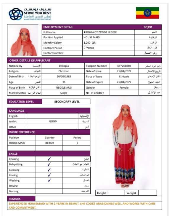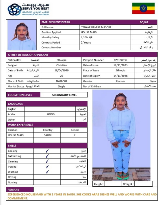 1 | الجنسية | اثيوبيا |