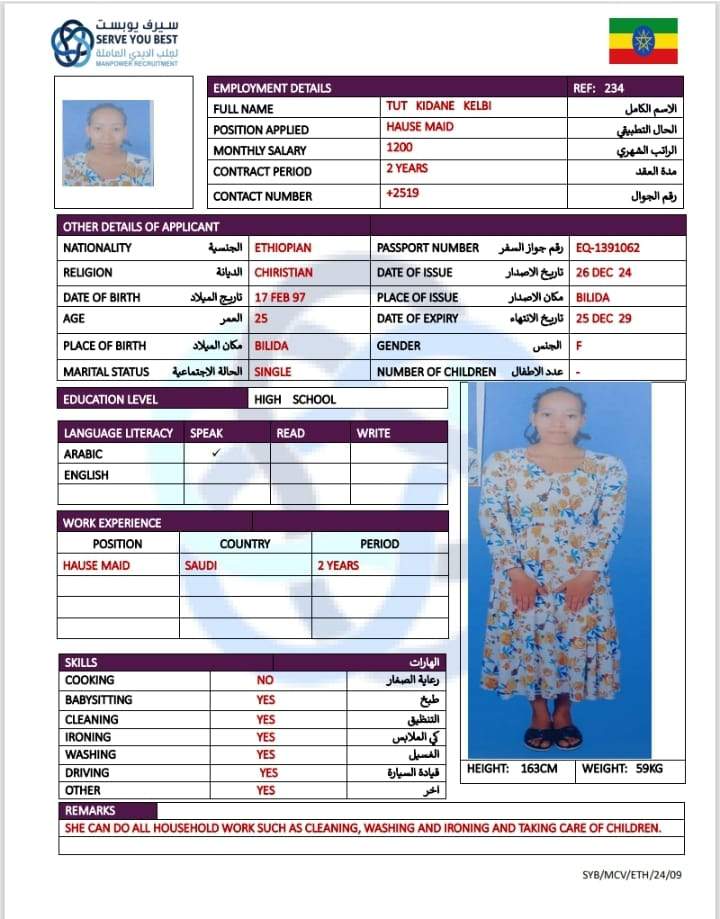 1 | الجنسية | اثيوبيا |