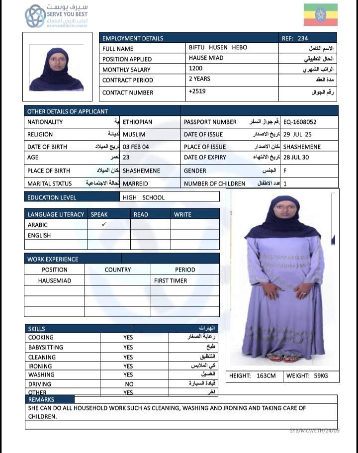 1 | الجنسية | اثيوبيا |