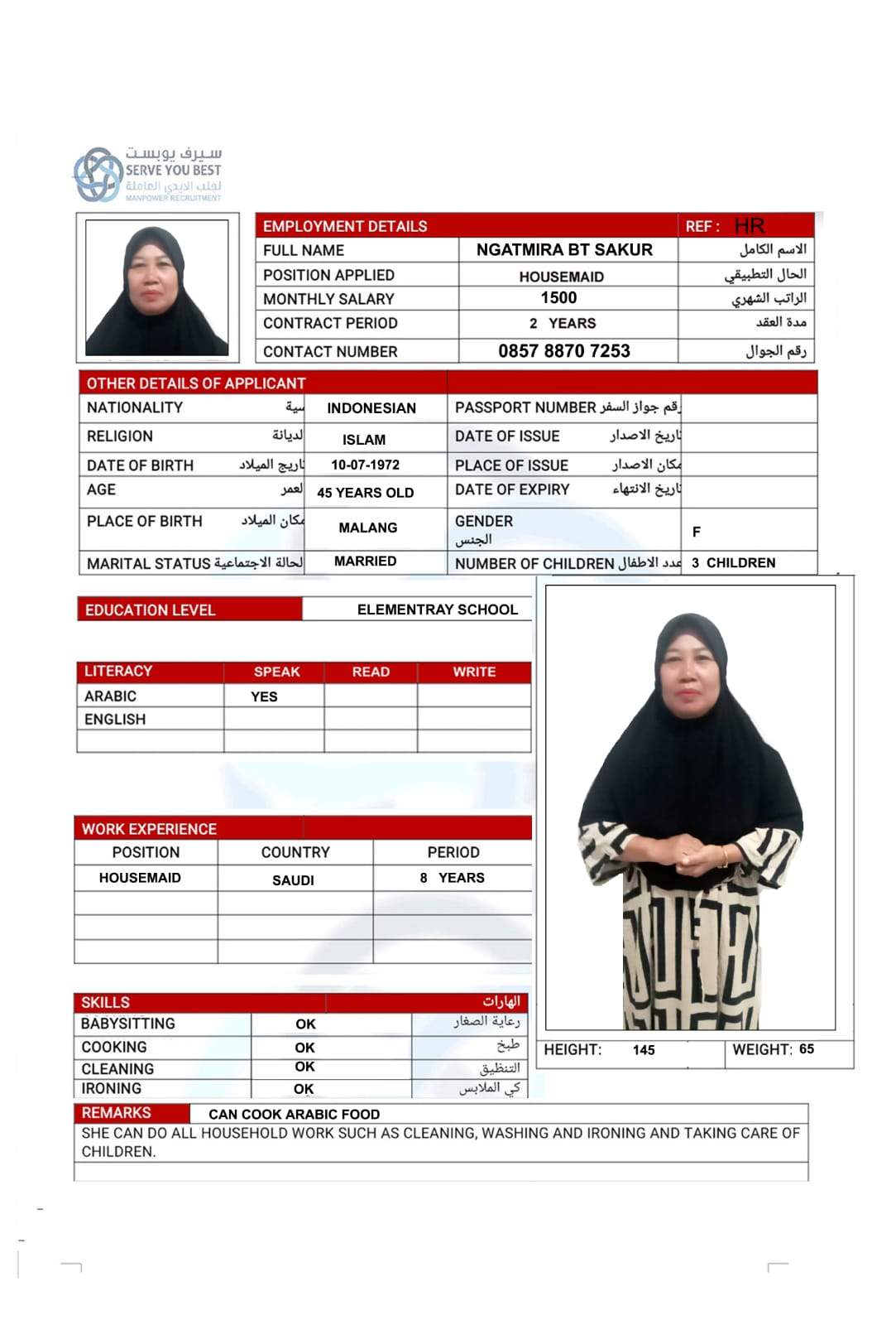 5 | الجنسية | اندونيسيا |