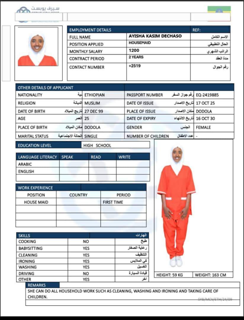 1 | الجنسية | اثيوبيا |