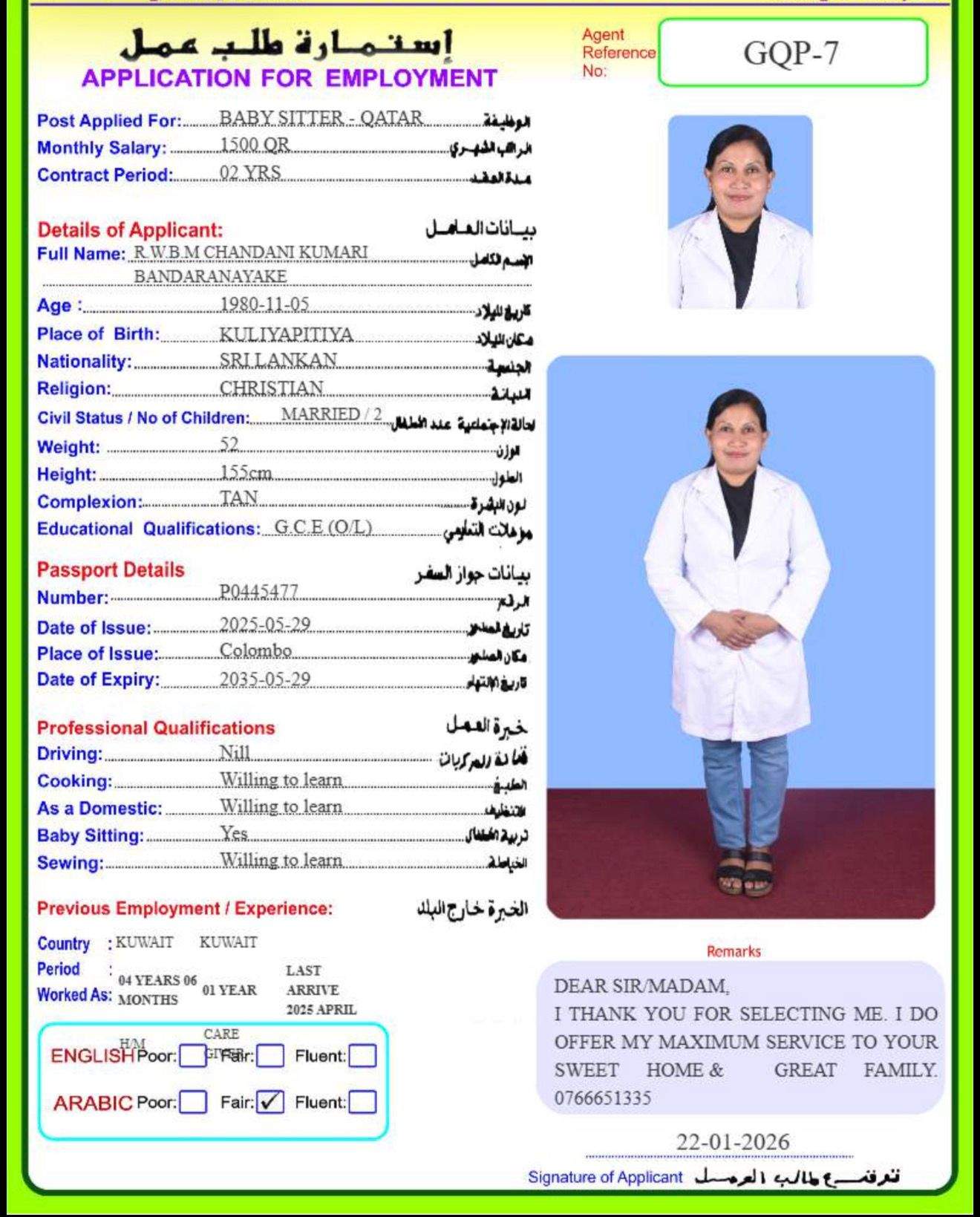 4 | الجنسية | سيريلانكا |