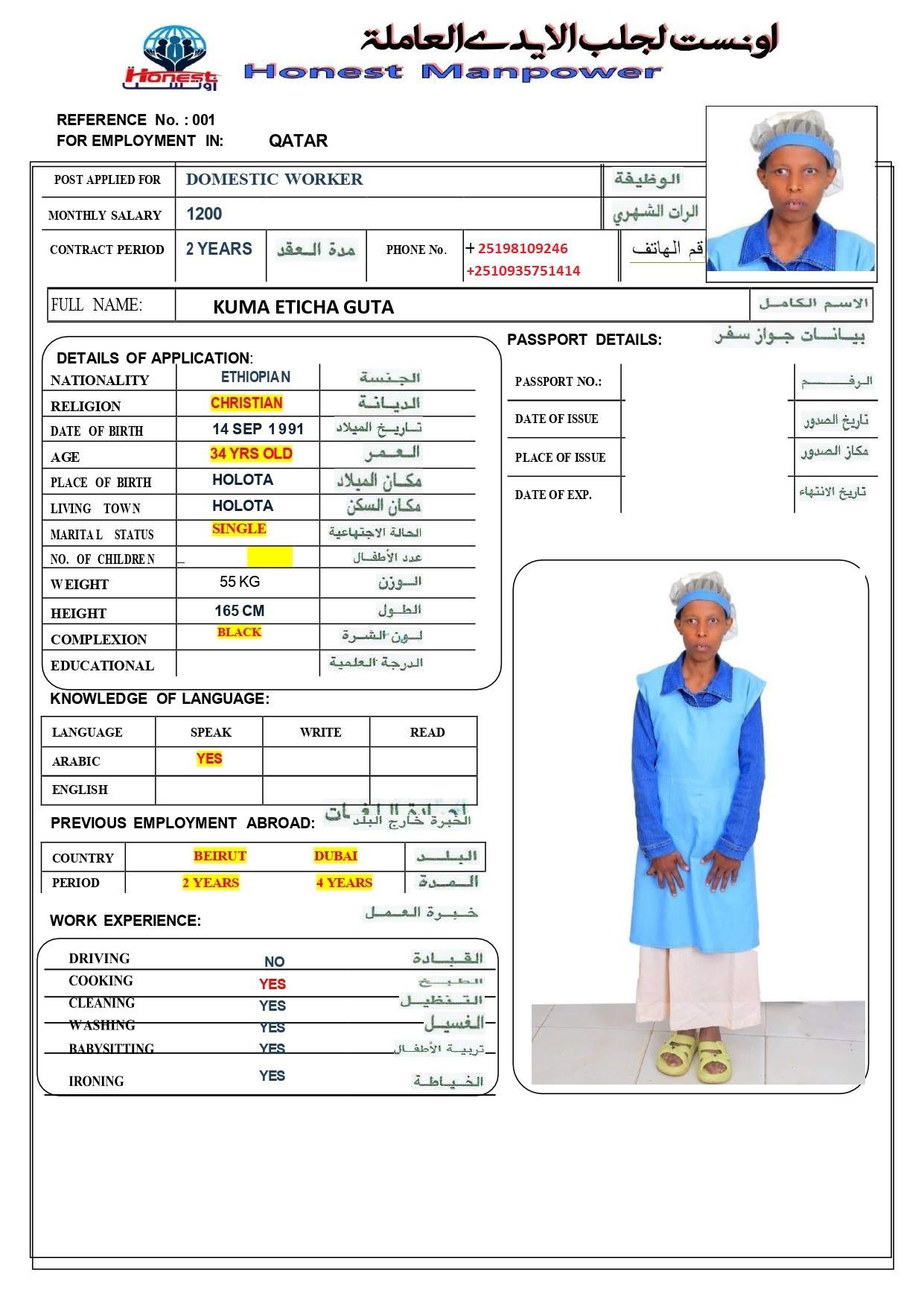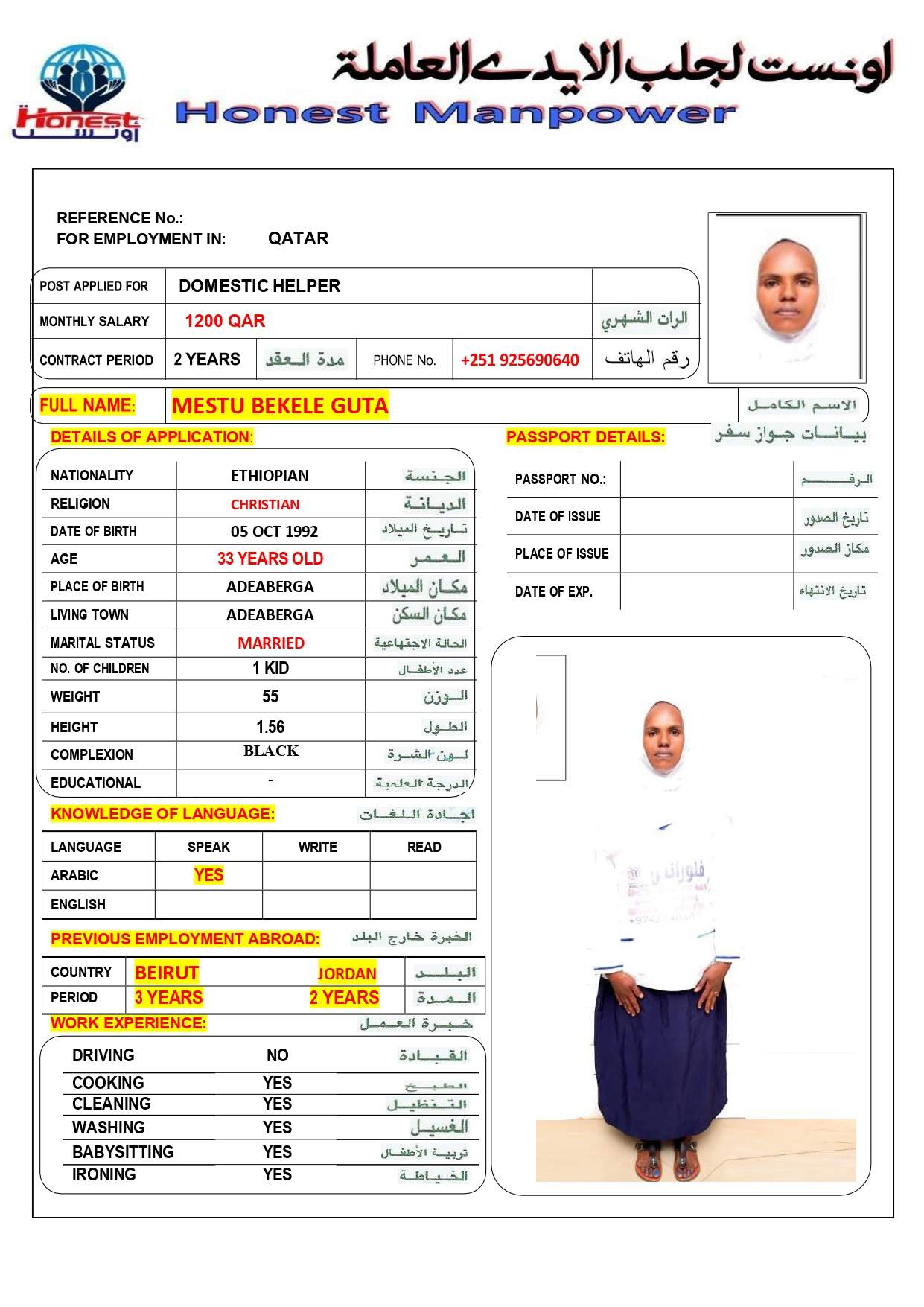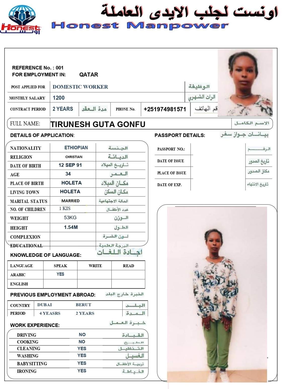 1 | الجنسية | اثيوبيا |