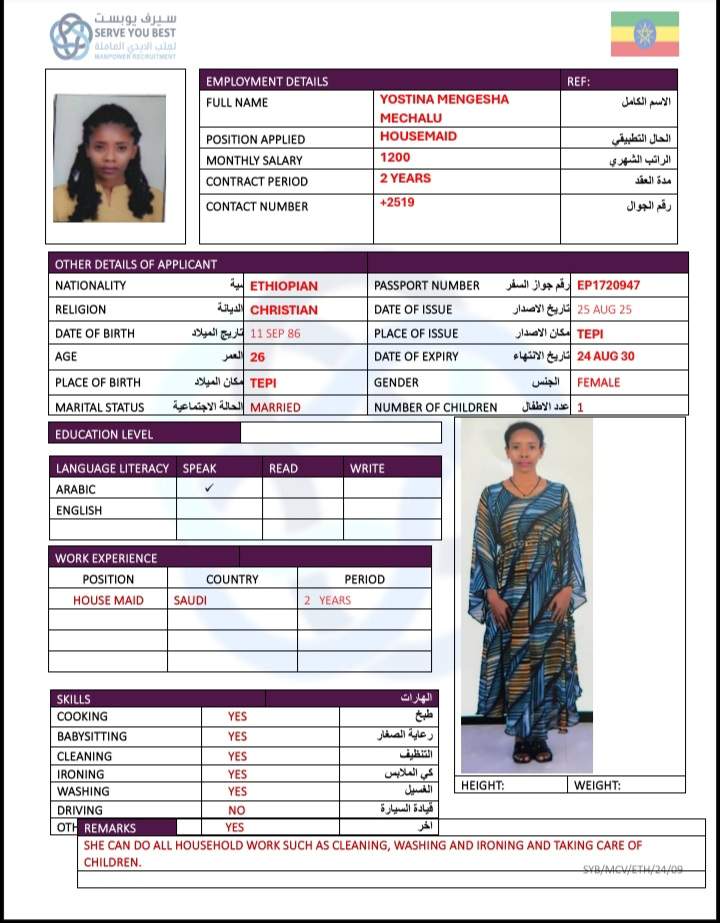 1 | الجنسية | اثيوبيا |