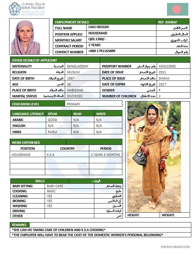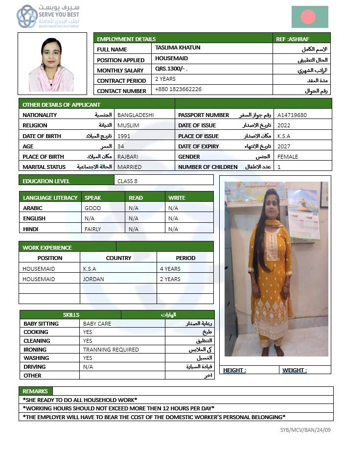 1 | الجنسية | بنجلاديش |