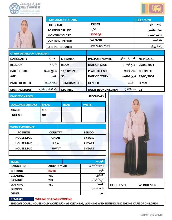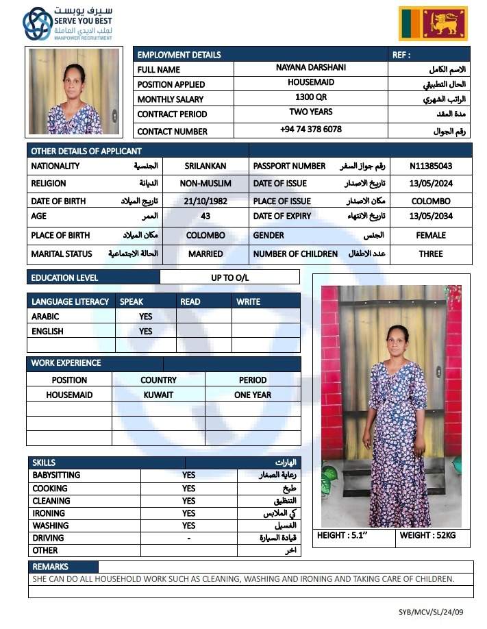 4 | الجنسية | سيريلانكا |