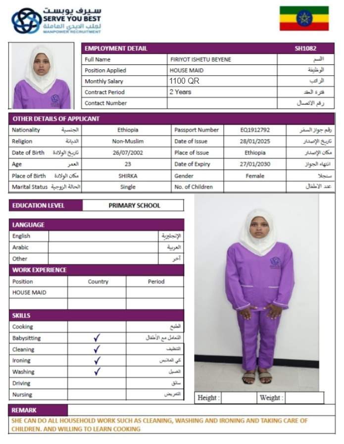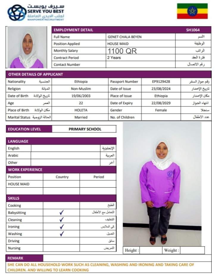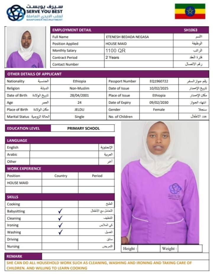 1 | الجنسية | اثيوبيا |