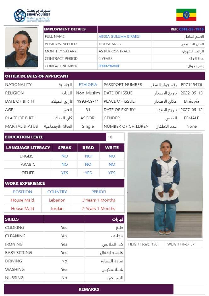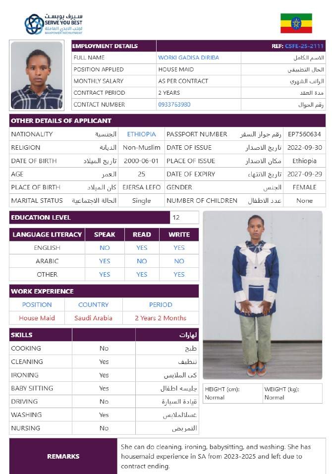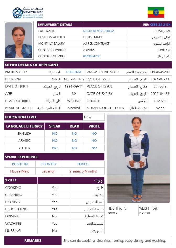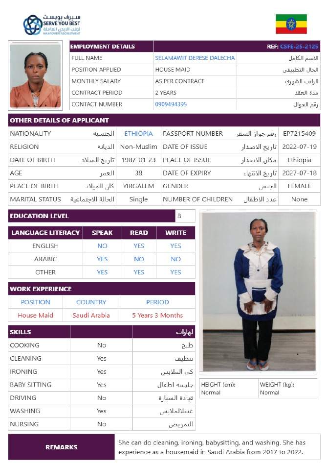 5 | الجنسية | اثيوبيا |