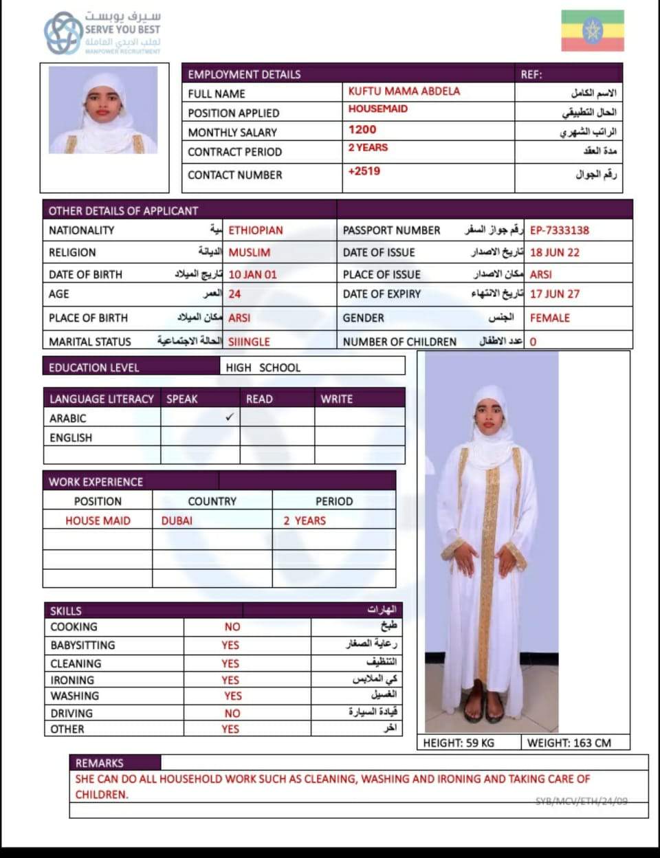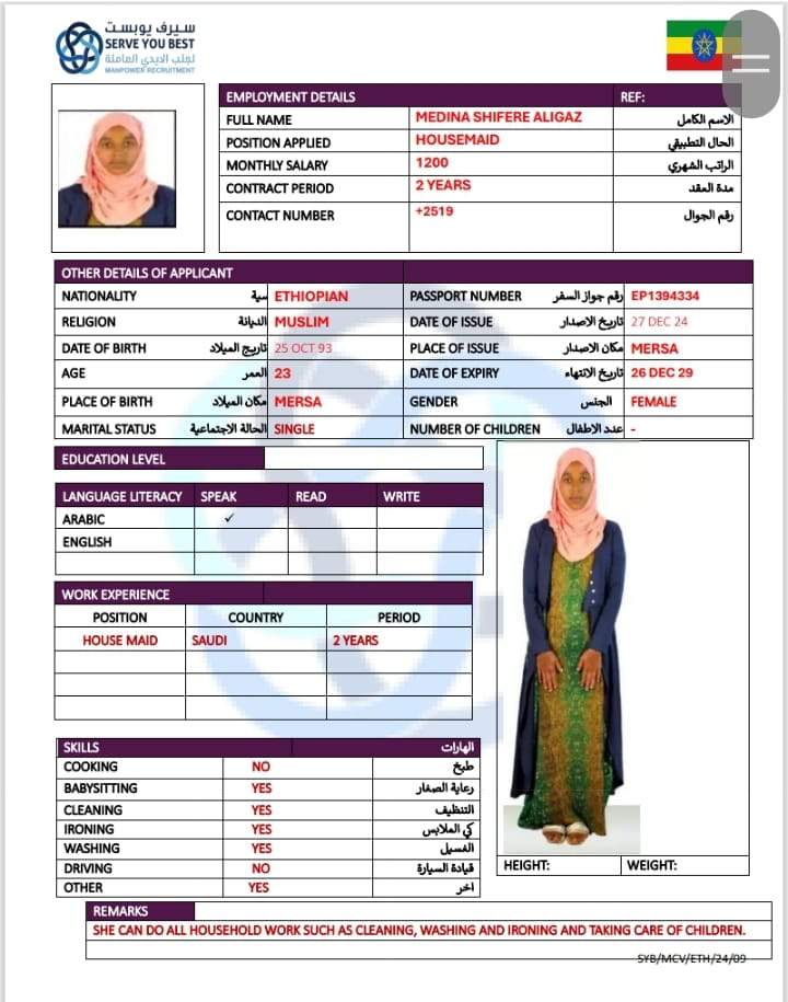 1 | الجنسية | اثيوبيا |