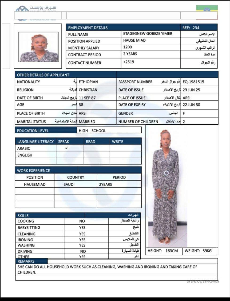 3 | الجنسية | اثيوبيا |